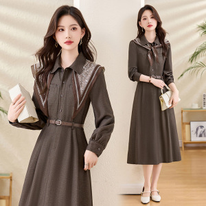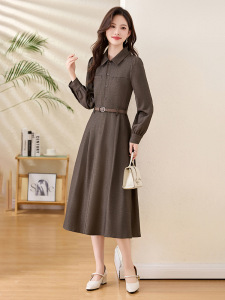 20025秋季新款女装气质长袖收腰显瘦长款连衣裙陪腰带丝巾Z5659