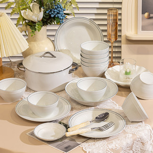 碗家用陶瓷简约日式螺纹碗碟套装高级感轻奢米饭碗盘碟乔迁碗具