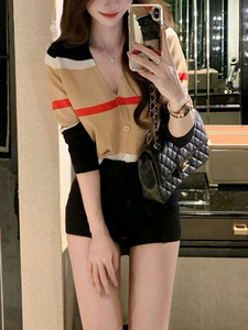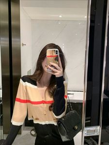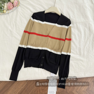 JustQn【巴宝栗】 2025新款秋装条纹针织衫修身小衫毛衣女外套