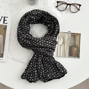 冬季棉麻围巾韩系氛围感新款复古文艺碎花褶皱护颈围脖披肩批发