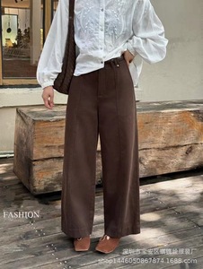 琪镌绘制秋季新款高腰显瘦百搭牛仔裤弯刀裤女宽松直筒阔腿裤7706