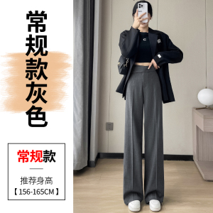 感灰色西装裤女春秋2025新款高腰毛呢窄版阔腿裤垂坠感拖地裤百搭