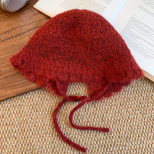 美拉德绑带针织渔夫帽女秋冬韩版百搭显脸小水桶帽大头围毛线帽子