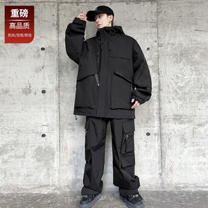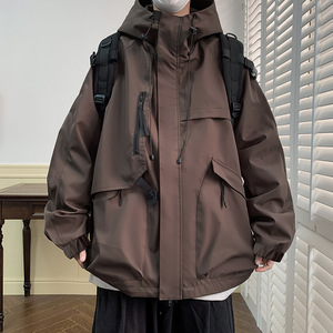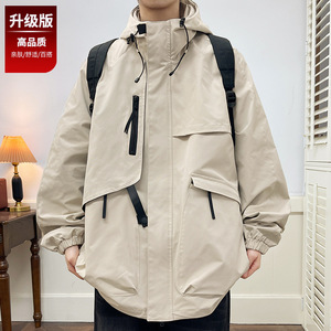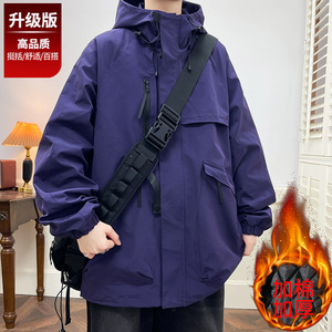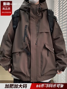 冲锋衣男款秋季美式潮宽松男士外套夹克胖子加肥加大码300斤男装