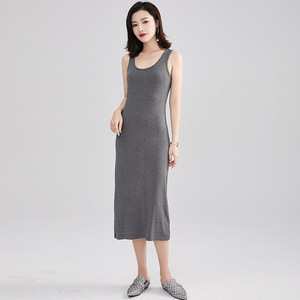 2025连衣裙吊带裙韩版高个子背心时尚无袖圆领显瘦中长裙秋季女装