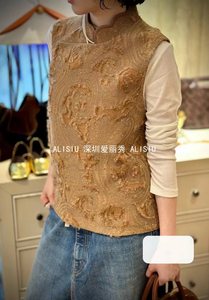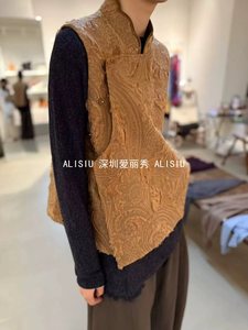 深圳南油真丝羊毛不规则立领斜襟叠穿气质百搭马甲提花无袖衬衫洋