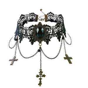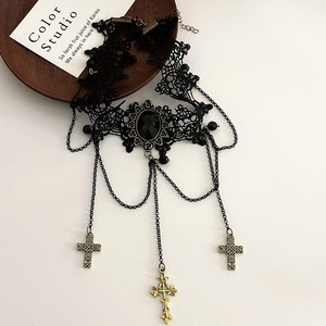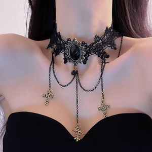 哥特风复古choker暗黑颈链蕾丝花边流苏锁骨链万圣节cos饰品项链