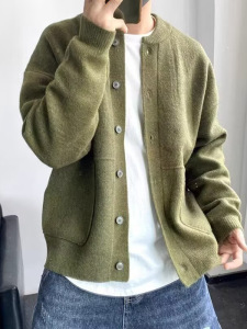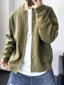 秋冬季新款开衫毛衣男生韩系时尚青年百搭休闲纯色慵懒风针织外套