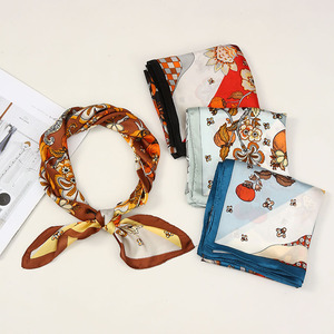 复古拼色花卉丝巾方巾轻薄舒适仿真丝小方巾百搭职业装饰领巾现货