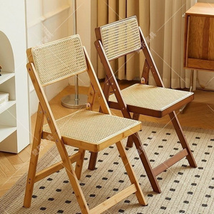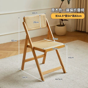 新侘寂风藤编椅子北欧现代靠背餐椅家用简约折叠椅实木休闲书桌凳
