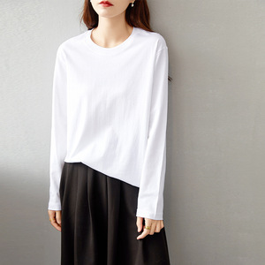 300G纯棉白色长袖T恤女早春秋冬季内搭基础款打底衫百搭休闲上衣