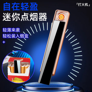 点烟器USB充电防风静音钨丝点烟器 轻薄便携可刻字滑盖电子点烟器