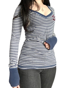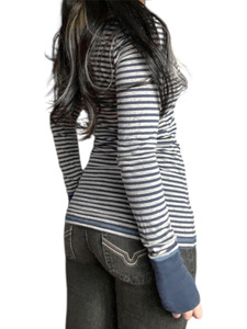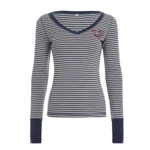 欧美休闲舒适风条纹长袖打底上衣V领街头Y2K秋冬款新款针织衫T恤