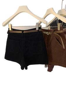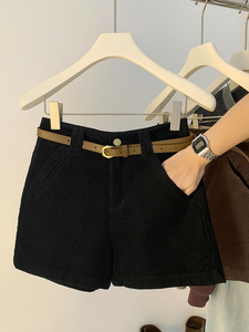 棕色灯芯绒短裤女美式高腰大码胖mm秋季加厚直筒靴裤美拉德休闲裤