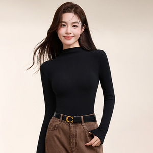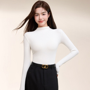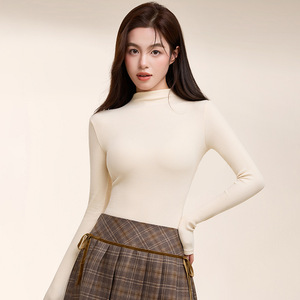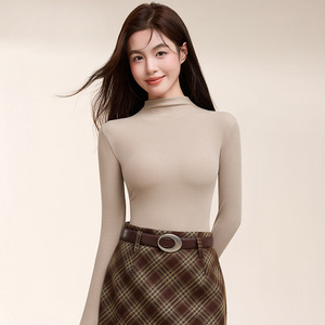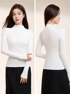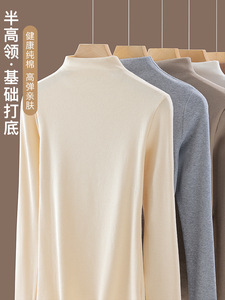 半高领纯棉螺纹长袖内搭打底衫女秋冬季修身弹力大码保暖T恤上衣