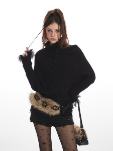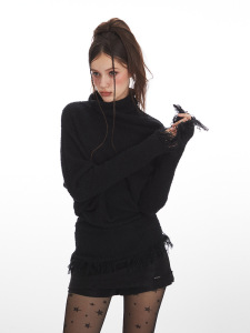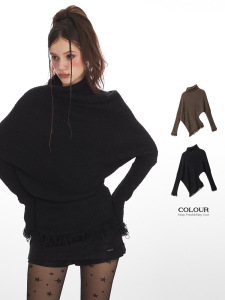 HeyHenry半高领套头不规则长袖针织衫内搭设计感秋冬季打底毛衣女