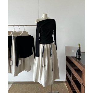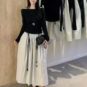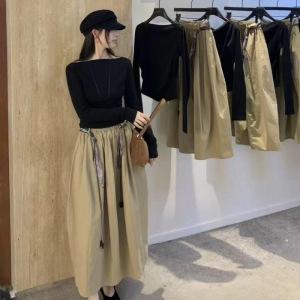 十三行2025秋新款时尚气质小众修身显瘦长袖上衣半身裙两件套女