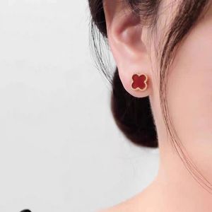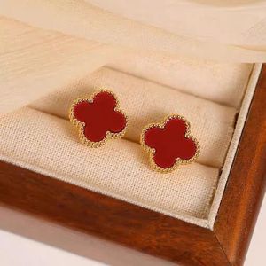红色金边花朵耳钉女轻奢简约小众高级感耳环新款爆款个性百搭耳饰