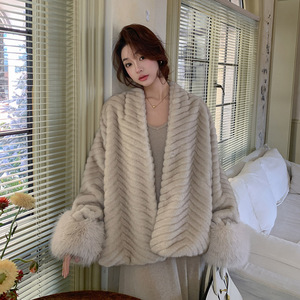 2025冬季新款环保仿皮草长短款外套水貂绒人字纹毛毛大衣年轻气质