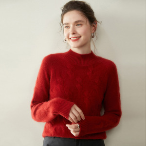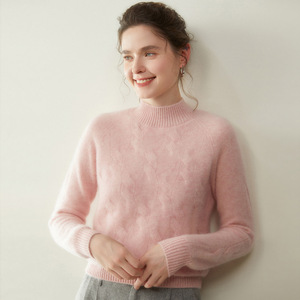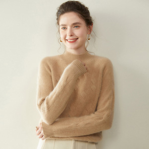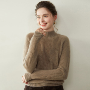 半高领山羊绒衫女七针插肩袖加厚毛衣25秋冬新款菱形提花针织打底