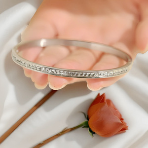 高级轻奢满天星微镶锆石钛钢手镯 4mm时尚小众爆款卡扣手环手饰品