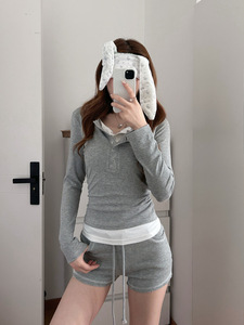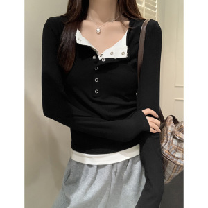 假两件撞色正肩长袖T恤内搭女2025秋季新款打底衫设计感气质上衣