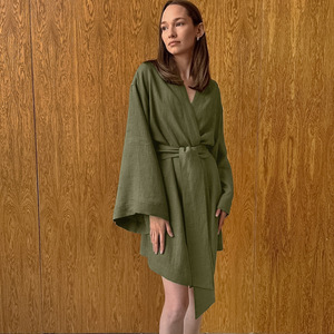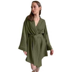 2025秋季新品棉麻睡袍长袖薄款睡衣女透气舒适欧美跨境女式家居服