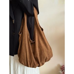 韩系复古麂皮绒托特包秋冬新款大容量百搭单肩包小众外出腋下包