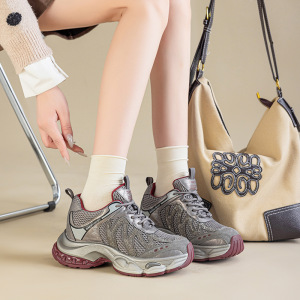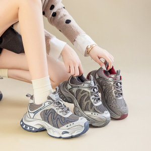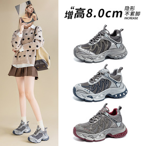 8cm跟高水钻老爹鞋女ins潮2025秋季网红爆款拼色吸膜底防滑跑步鞋