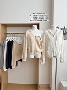 把妹王白色连帽卫衣拉链外套女薄款斜肩短款开衫上衣