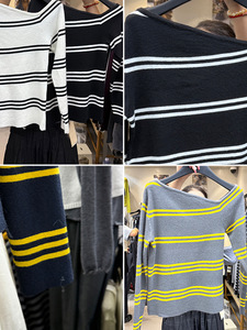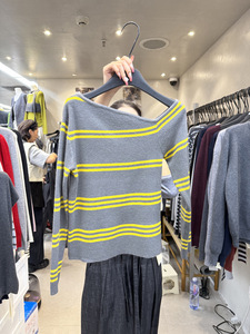 韩国东大门2025秋季韩版新款个性条纹针织长袖修身辣妹斜肩领上衣