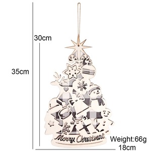 圣诞派对装饰品木质吊饰挂牌圣诞树形挂件木质工艺品镂空门牌挂饰