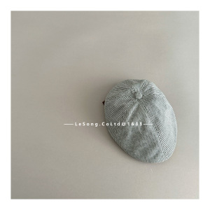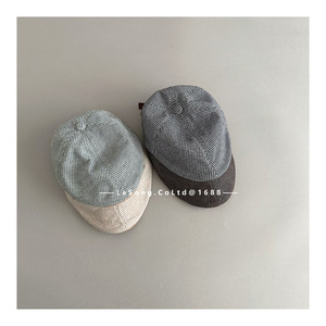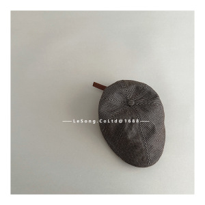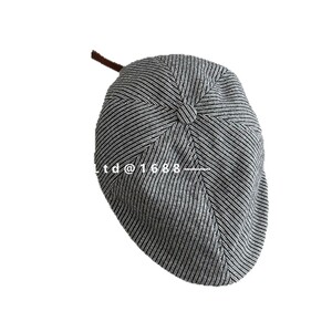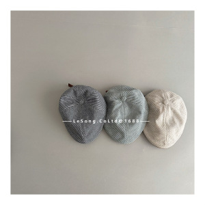 儿童新款复古文艺细条纹鸭舌帽秋冬大头围高品质针织前进帽贝雷帽