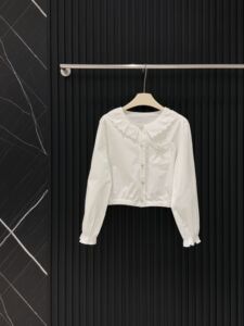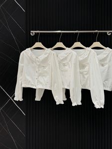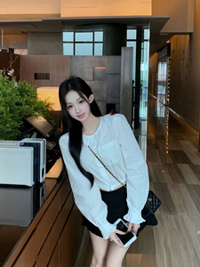 南油早秋高定小香风法式蕾丝荷叶边白色衬衫女气质百搭显瘦送胸针