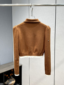 深圳南油重工钉珠娃娃领单排扣长袖修身短款针织衫女2025年秋季新