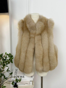 云朵马甲 矜贵显瘦韩系整皮狐狸毛时尚竖条洋气款皮草马甲2025新