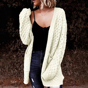 跨境亚马逊秋冬新款针织衫欧美外贸宽松时尚百搭开衫外套毛衣女装