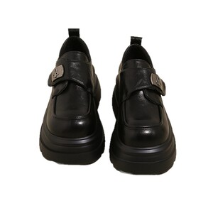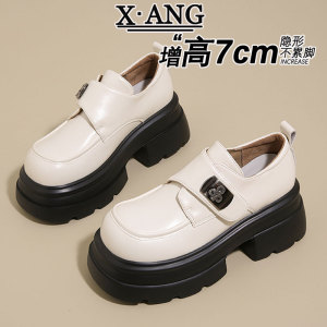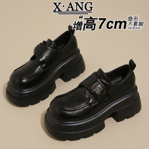 真皮乐福鞋子女黑色粗跟小皮鞋松糕厚底增高7cm小个子女鞋jk单鞋
