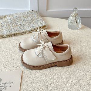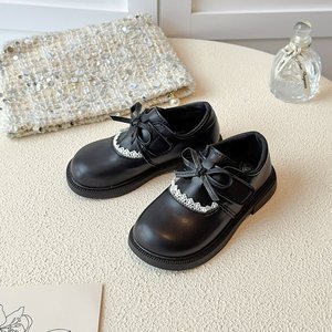 女童小皮鞋2025年春秋新款儿童软底豆豆鞋蝴蝶结公主鞋小女孩单鞋