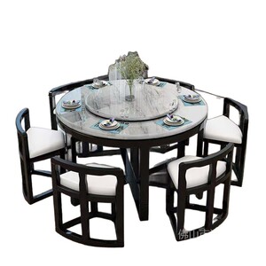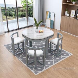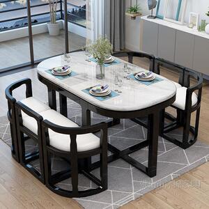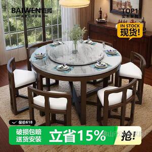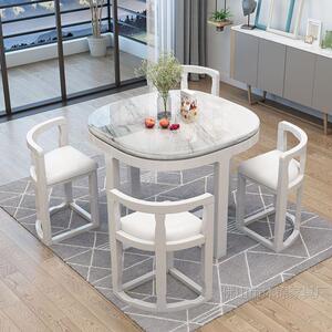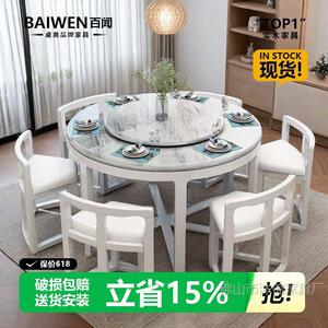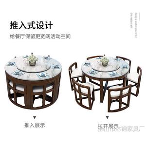 大理石餐桌椅组合网红家用圆桌全实木餐桌家用小户型多功能隐形桌