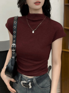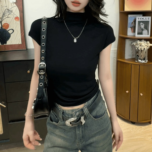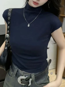 2025半高领短袖T恤女时尚纯色韩版显瘦早秋打底衫内搭女上衣夏