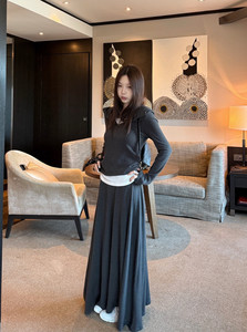 【MISS密思家】拼色假两件收腰显瘦连帽小衫+A摆显瘦半身裙89038