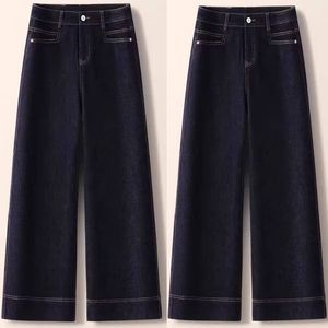 丹宁色牛仔裤女高腰阔腿深档2025春秋新款今年流行窄版宽松直筒裤