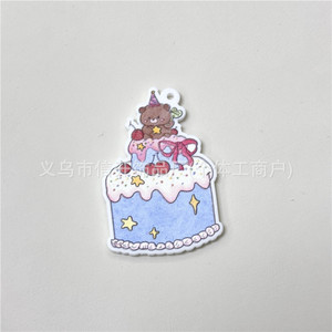 吊孔生日蛋糕卡通印花片片吊牌diy手工串珠手机链包挂件饰品材料