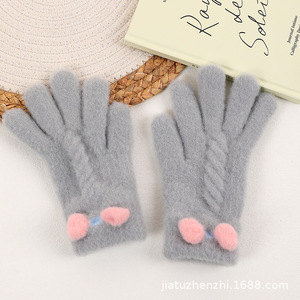 冬季手套女加绒加厚五指学生可爱针织防寒骑行可触屏保暖骑车手套