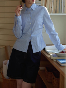 2025SS 知识分子风抽皱收腰小蓝格长袖衬衫
