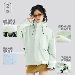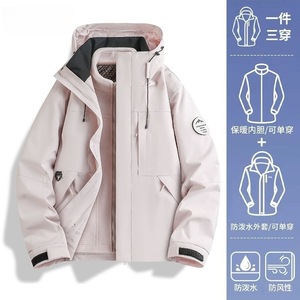 骆托同款冲锋衣女25户外秋冬三合一防风防水保暖宽松小个子外套男