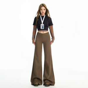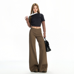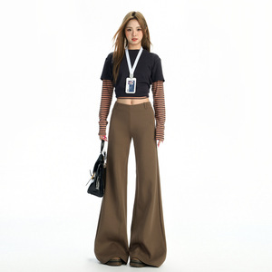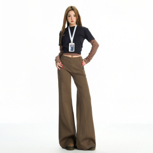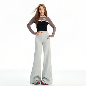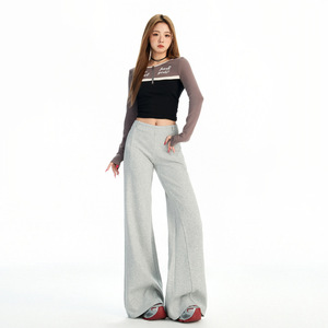美式复古灰色微喇裤女2025新款高腰显瘦中低腰阔腿裤休闲运动裤秋