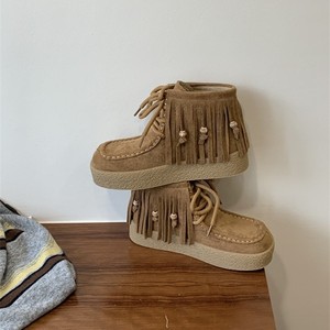 巨好看流苏厚底马丁靴女2025新款秋冬复古英伦风增高舒适短筒靴子