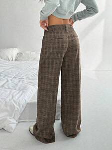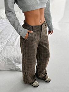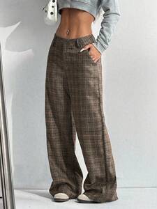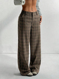潮牌美式慵懒风格子阔腿休闲裤男女松弛感立体廓形宽松直筒长裤子